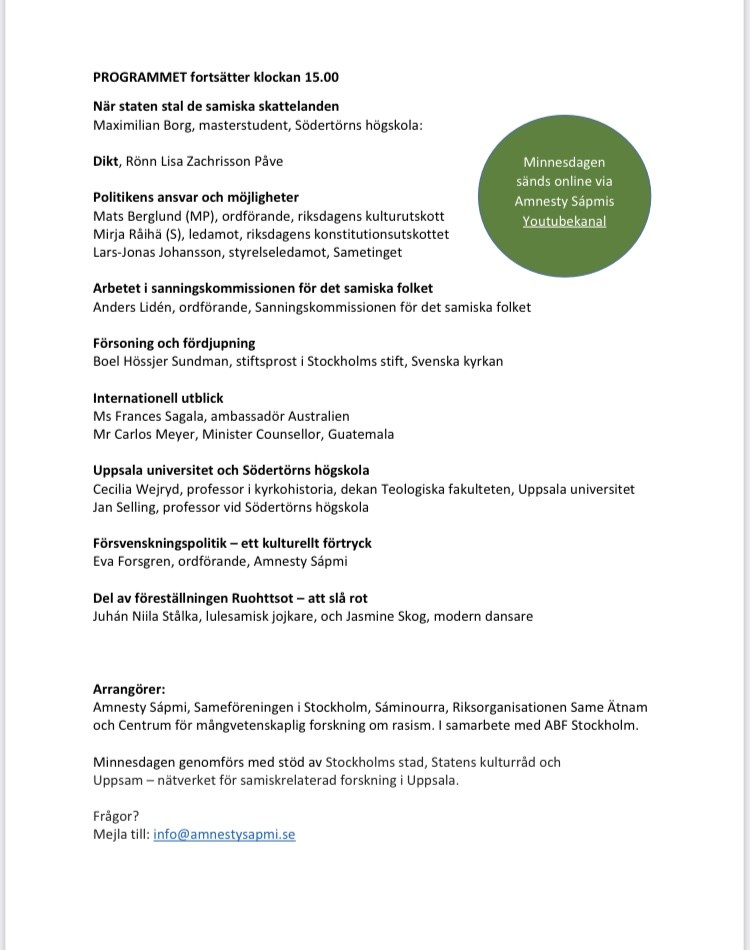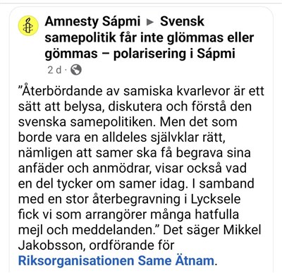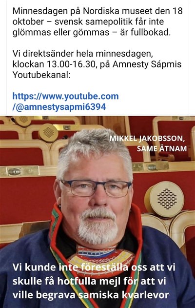 Det är viktigt att genom särskilda minnesdagar uppmärksamma hur olika former av övergrepp och kränkningar har präglat Sverige och urfolket samerna. Svensk samepolitik får inte glömmas eller gömmas. Det är en del av berättelsen om Sverige.