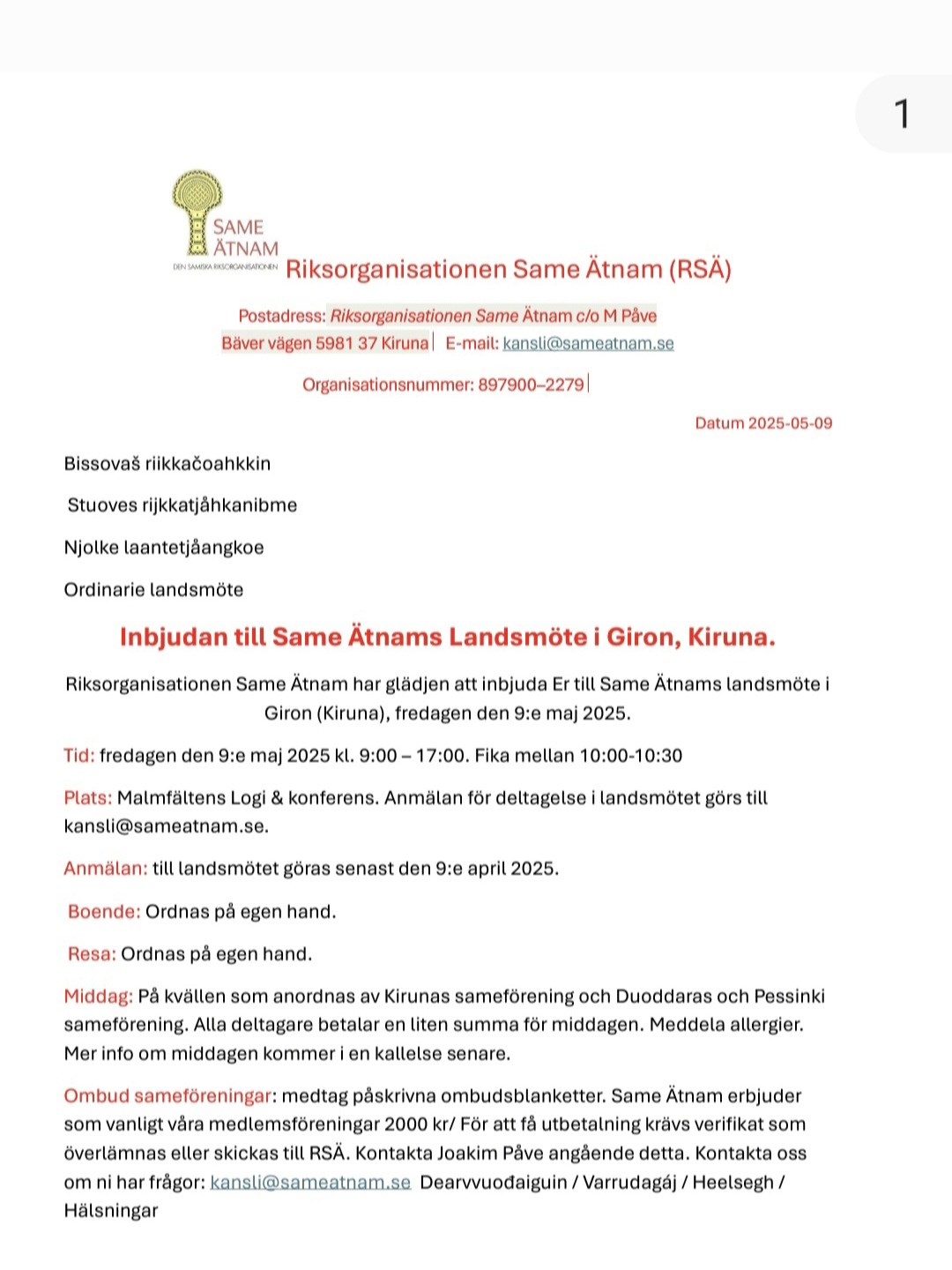 Landsmötet 13 maj i Arvidsjaur på hotell Laponia.